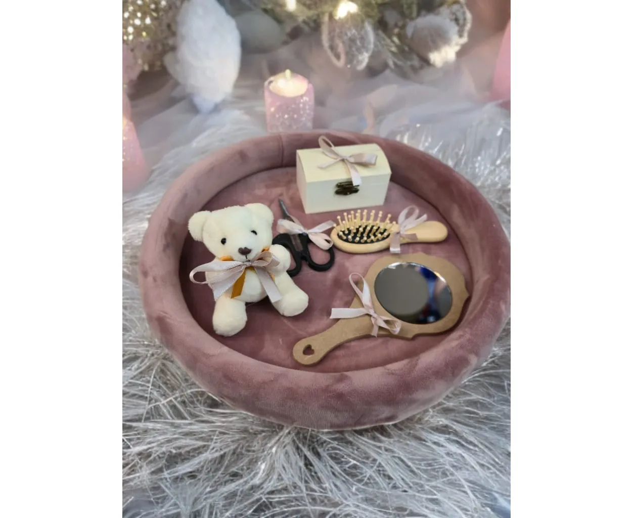 Tavita Mot/Turta, Buretata din Catifea cu 7 Piese - Roz-Mov - TPT501