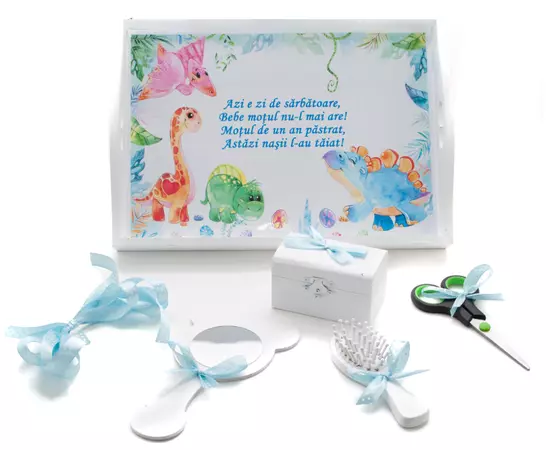 Taierea motului/ Turta este o traditie frumoasa si îndrăgita la noi în țară și practicat în mai toate familiile, reprezentând un prilej de bucurie și sărbătoare. Va propunem un set complet care imbina toate elementele de care nasii si parintii bebelusului au nevoie pentru taierea motului.