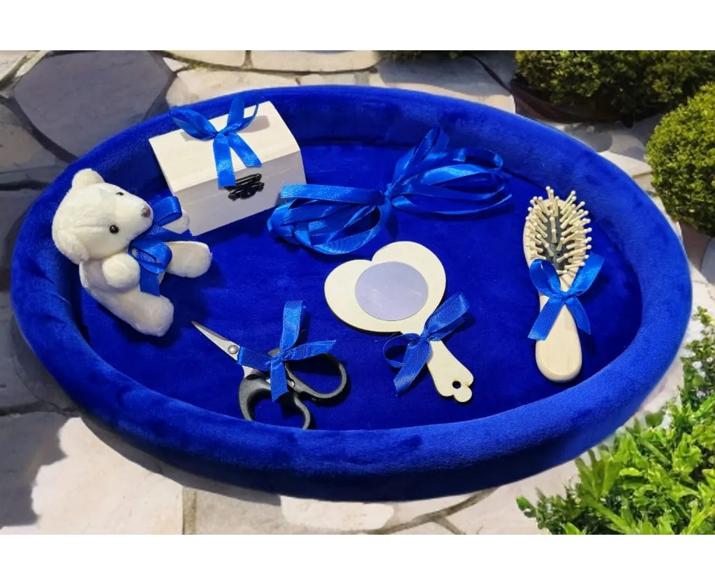 Tavita Mot/Turta, Ovala din Catifea cu 7 Piese - Albastra - TPT526