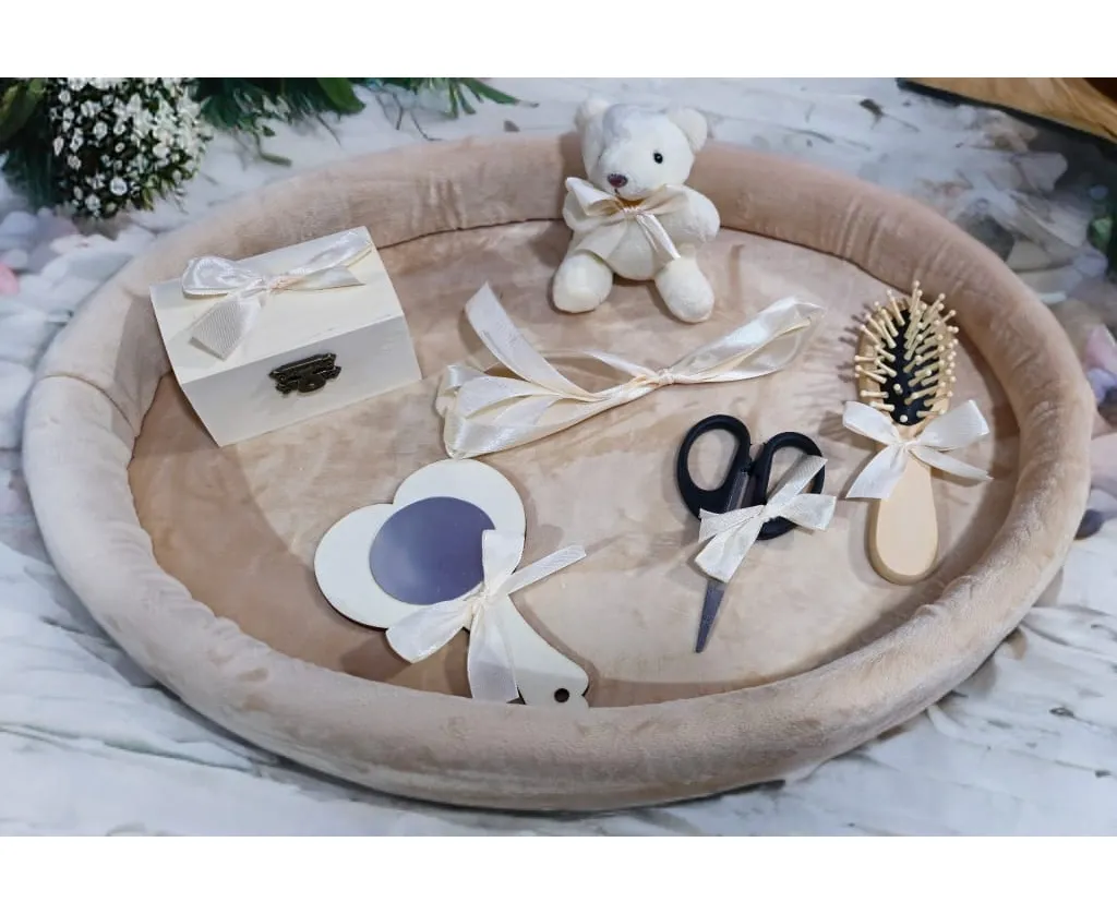 Tavita Mot/Turta, Ovala din Catifea cu 7 Piese - Bej - TPT534
