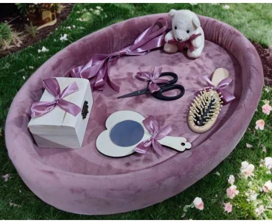 Tavita Mot/Turta, Ovala din Catifea cu 7 Piese - Roz/Mov - TPT530