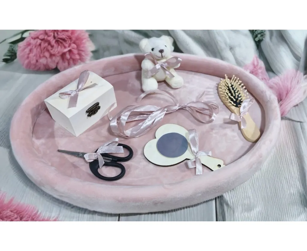 Tavita Mot/Turta, Ovala din Catifea cu 7 Piese - Roz/Nude - TPT531