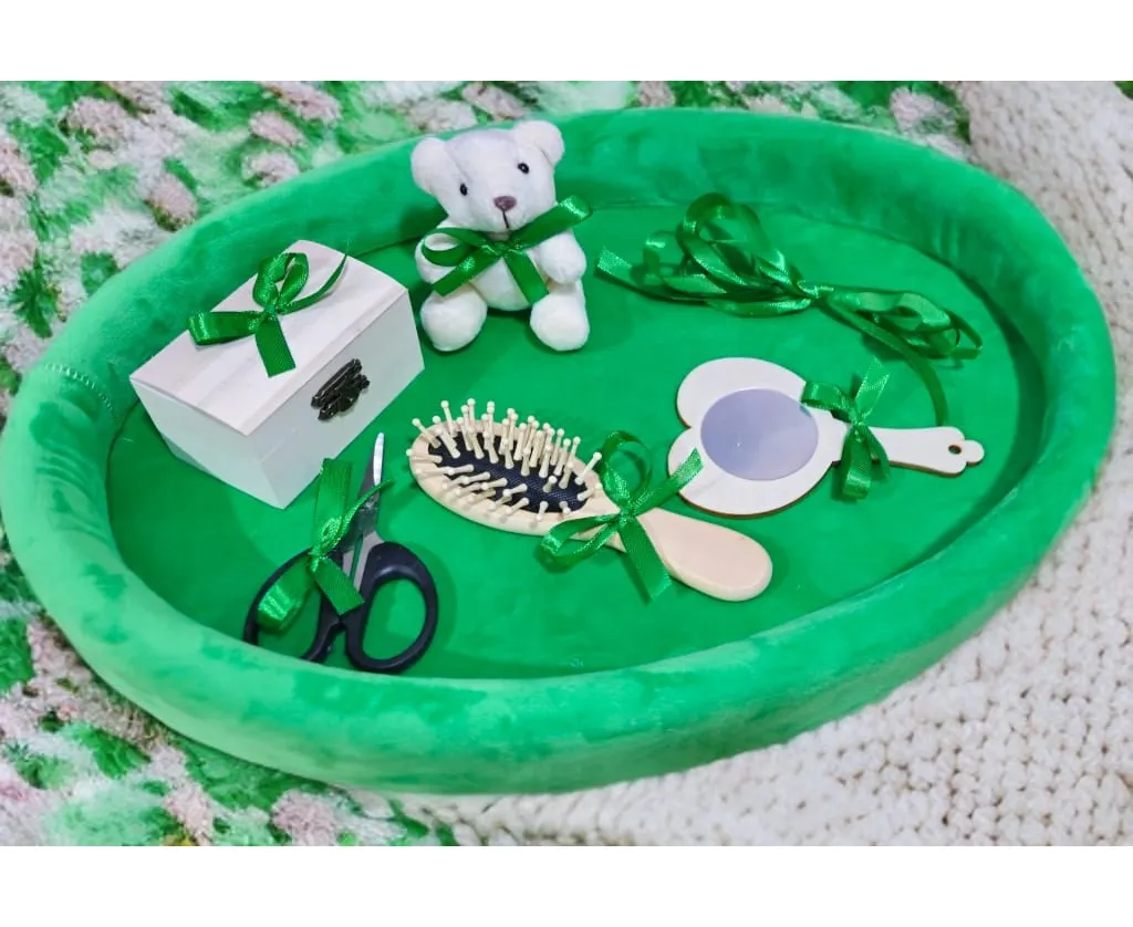 Tavita Mot/Turta, Ovala din Catifea cu 7 Piese - Verde Deschis - TPT535
