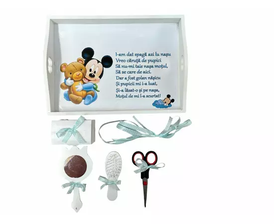 Taierea motului/ Turta este o traditie frumoasa si îndrăgita la noi în țară și practicat în mai toate familiile, reprezentând un prilej de bucurie și sărbătoare. Va propunem un set complet care imbina toate elementele de care nasii si parintii bebelusului au nevoie pentru taierea motului.