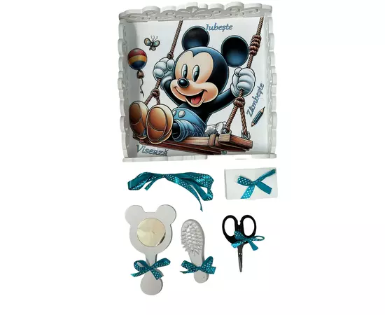 Tavita pentru Mot cu 6 Piese - Baby Mickey in Leagan - TPM56 Alb cu Bleu