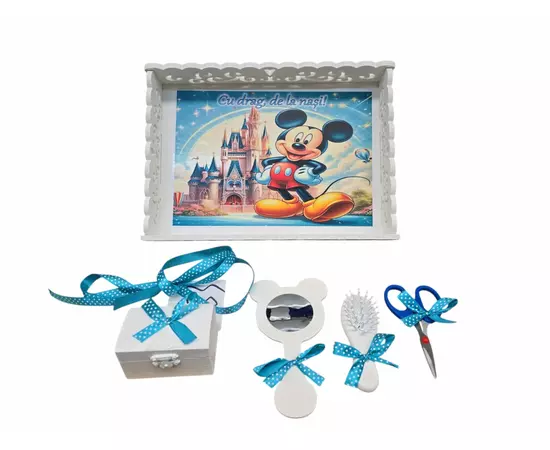 Tavita pentru Mot cu 6 Piese - Mickey la Castel - TPM75 Alb cu Albastru