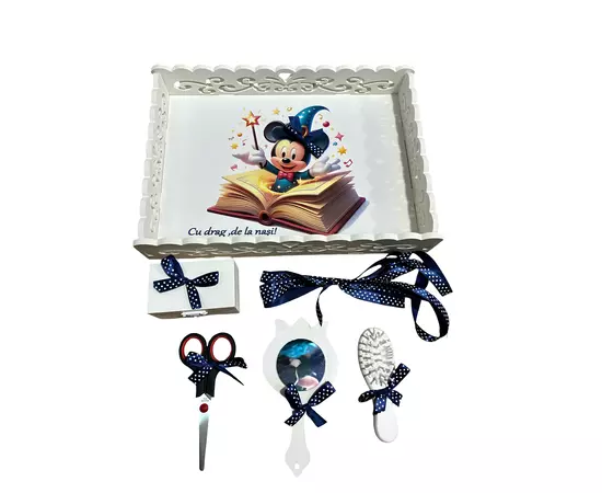 Tavita pentru Mot cu 6 Piese - Mickey Magicianul - TPM70 Alb cu Bleumarin