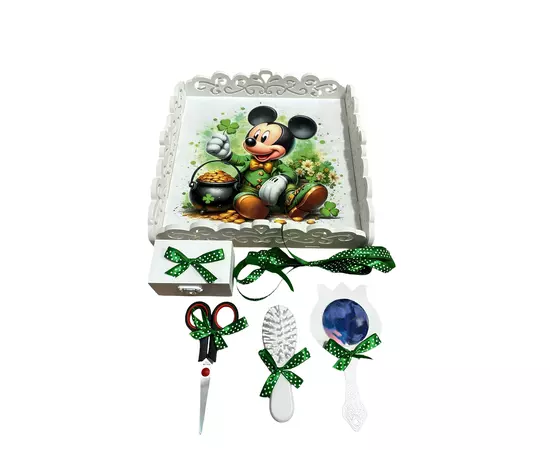 Tavita pentru Mot cu 6 Piese - Mickey Norocosul- TPM67 Alb cu Verde