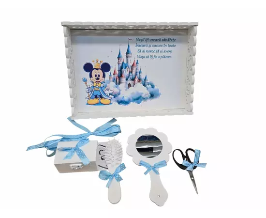 Tavita pentru Mot cu 6 Piese - Mickey Rege la Castel - TPM73 Alb cu Albastru Deschis