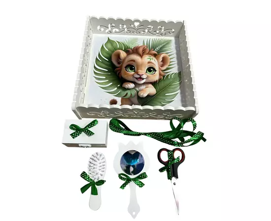 Tavita pentru Mot cu 6 Piese - Regele Leu - TPM68 Alb cu Verde