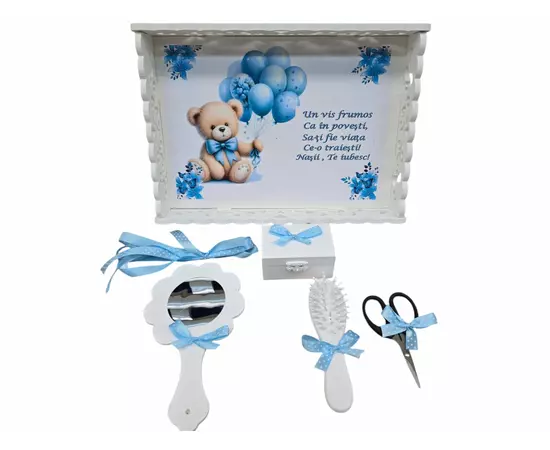 Tavita pentru Mot cu 6 Piese - Ursulet cu Baloane - TPM72 Alb cu Albastru Deschis