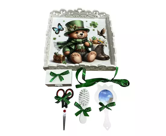 Tavita pentru Mot cu 6 Piese - Ursulet Verde - TPM69 Alb cu Verde