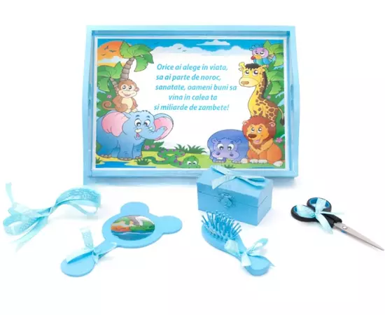 Taierea motului/ Turta este o traditie frumoasa si îndrăgita la noi în țară și practicat în mai toate familiile, reprezentând un prilej de bucurie și sărbătoare. Va propunem un set complet care imbina toate elementele de care nasii si parintii bebelusului au nevoie pentru taierea motului.