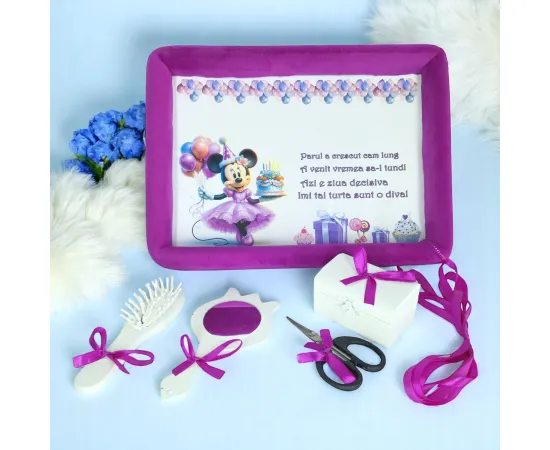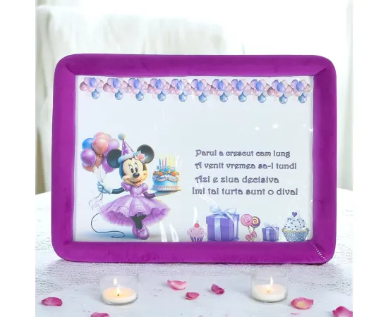 - tavita buretata imbracata in catifea cu imprimeu Minni Mouse si text(personalizabil)