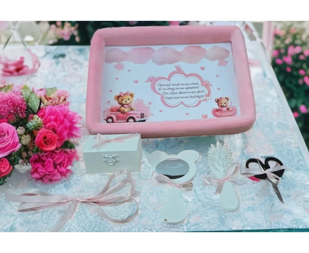 Taierea motului/ Turta este o traditie frumoasa si îndrăgita la noi în țară și practicat în mai toate familiile, reprezentând un prilej de bucurie și sărbătoare. Va propunem un set complet care imbina toate elementele de care nasii si parintii bebelusului au nevoie pentru taierea motului.
