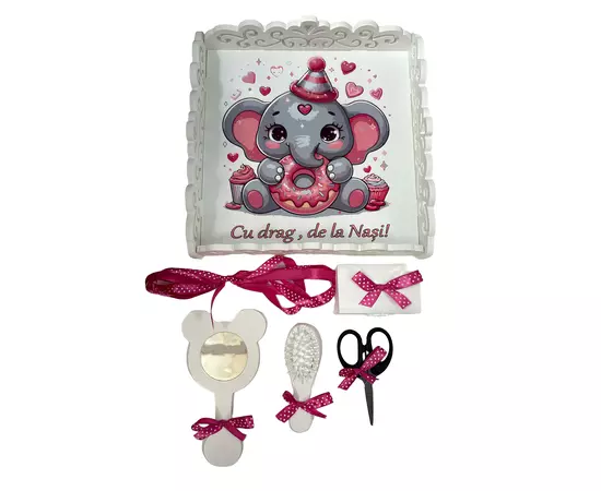 Tavita Turta cu 6 Piese - Baby Elefant - TPT60 Alb cu Roz Inchis