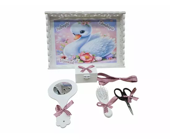 Tavita Turta cu 6 Piese - Lebada - TPT74 Alb cu Roz Pudra