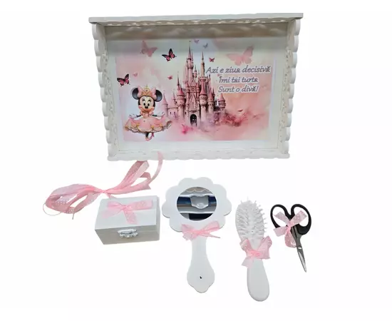 Taierea motului/ Turta este o traditie frumoasa si îndrăgita la noi în țară și practicat în mai toate familiile, reprezentând un prilej de bucurie și sărbătoare. Va propunem un set complet care imbina toate elementele de care nasii si parintii bebelusului au nevoie pentru taierea motului.