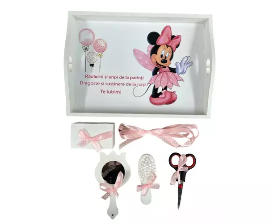 Tavita Turta cu 6 Piese - Minnie Mouse cu Baloane - TPT47 Alb