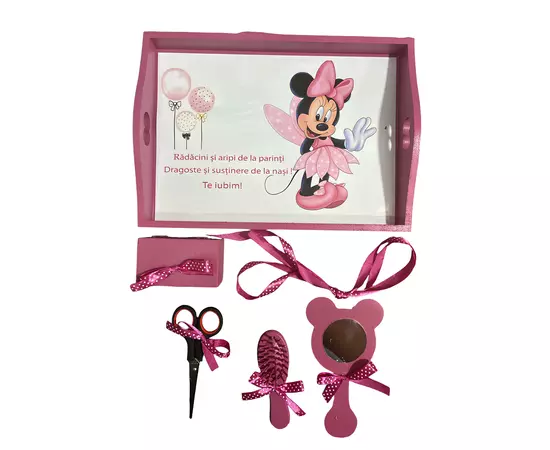 Tavita Turta cu 6 Piese - Minnie Mouse cu Baloane - TPT54 Roz Inchis