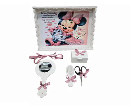 Tavita Turta cu 6 Piese - Minnie si Pisica - TPT64 Alb cu Roz