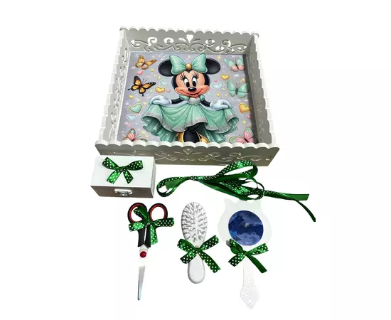 Tavita Turta cu 6 Piese - Minnie Verde - TPT70 Alb cu Verde