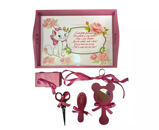 Tavita Turta cu 6 Piese - Pisica Aristocrata - TPT55 Roz Inchis