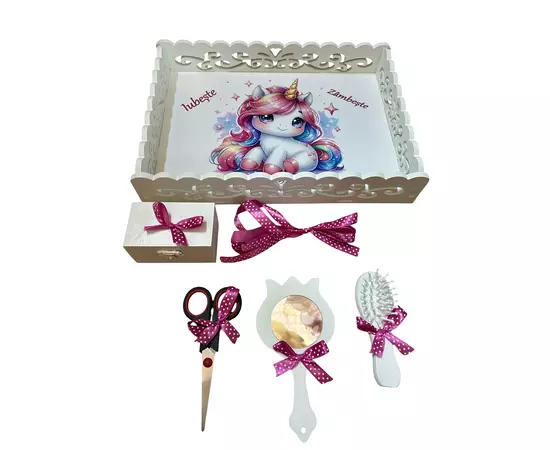 Tavita Turta cu 6 Piese - Unicorn - TPT66 Alb cu Roz Inchis