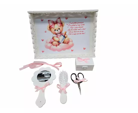 Tavita Turta cu 6 Piese - Ursulet cu Biberon - TPT76 Alb cu Roz