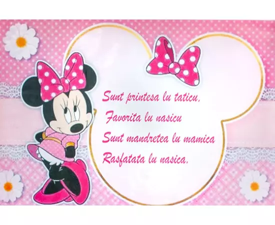 - tavita cu imprimeu viu colorat cu diferite mesaje și personaje;