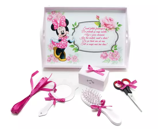 Tavita Turta cu 6 Piese - Minnie cu Bujori - TPT03 Roz Deschis