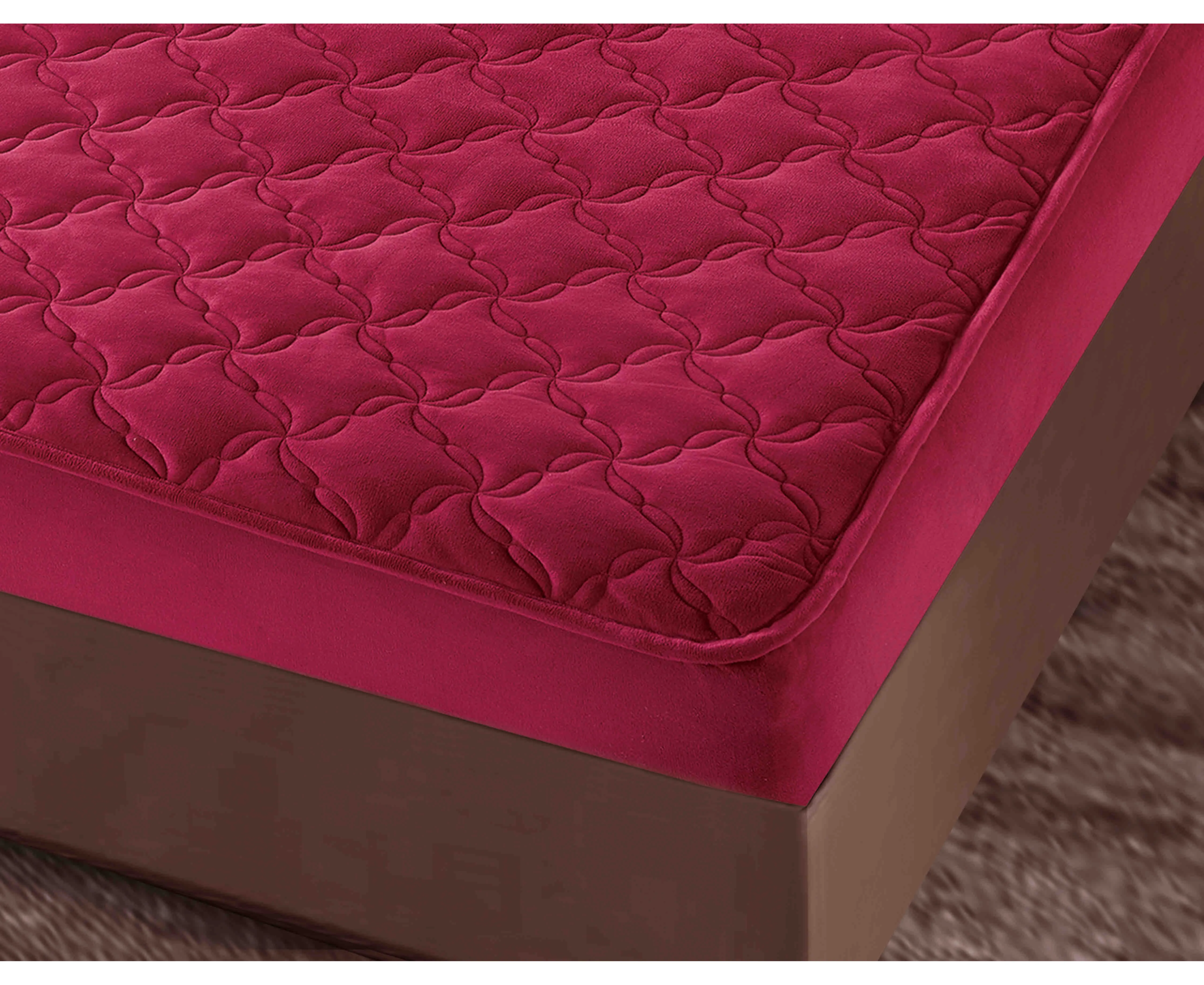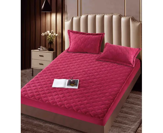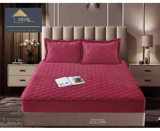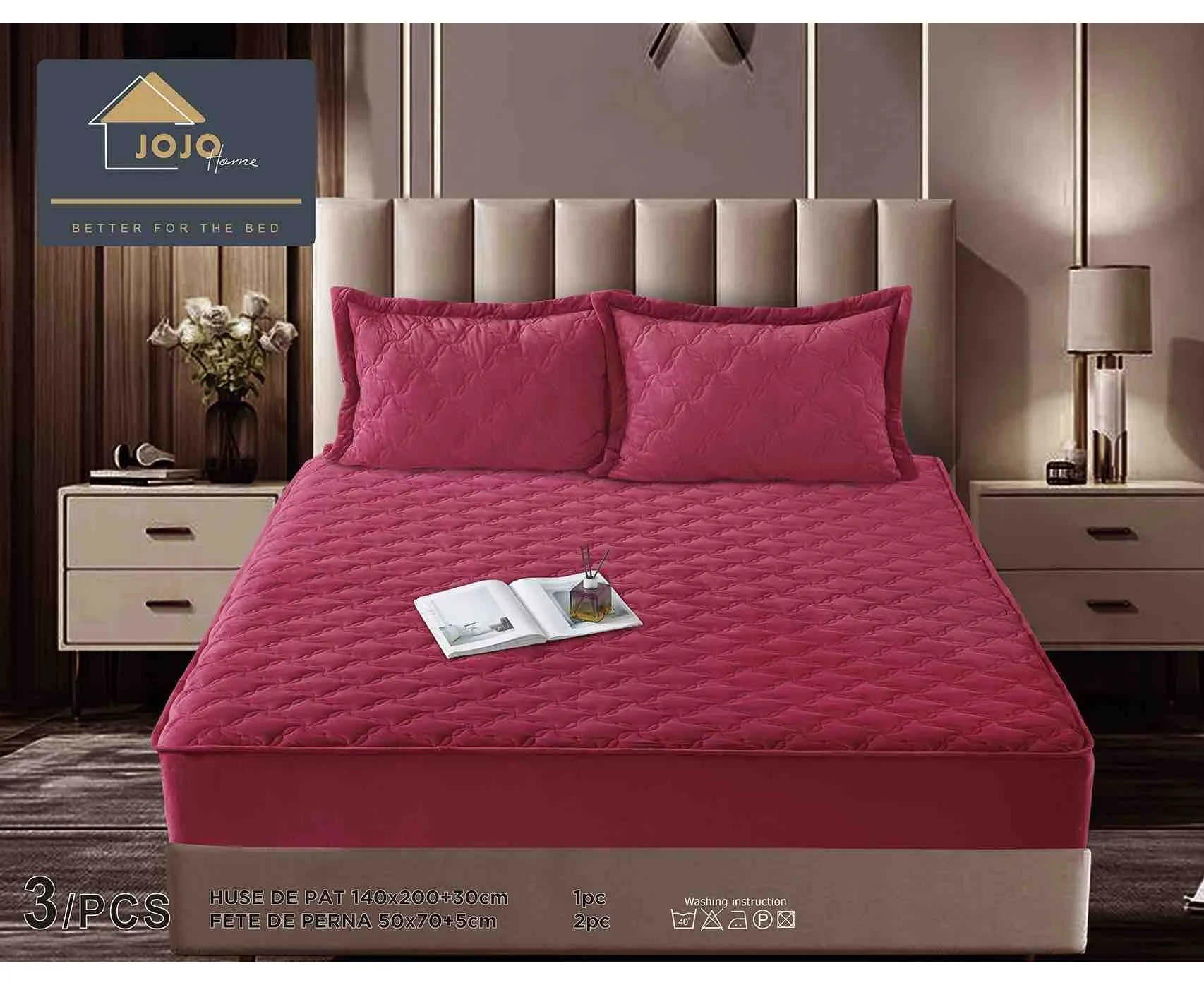 Topper Saltea/Husa de pat matlasata si 2 fete de perne din catifea, cu elastic, model tip topper 140x200 - JO852