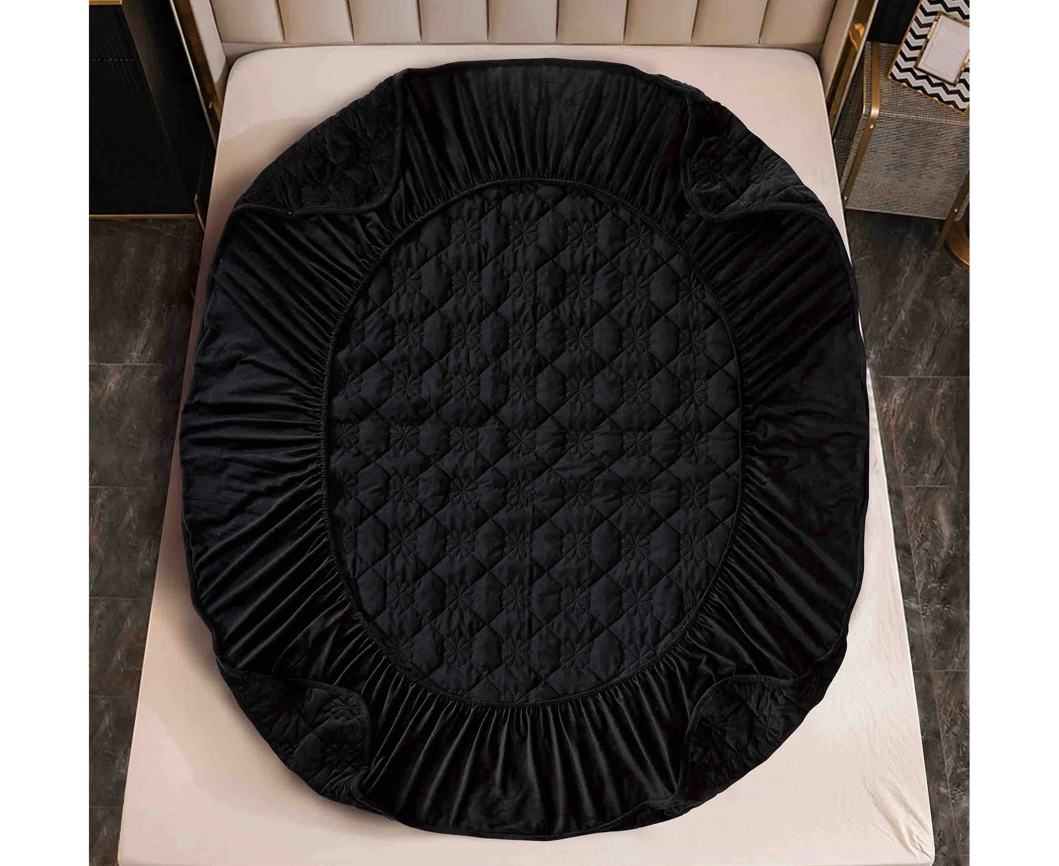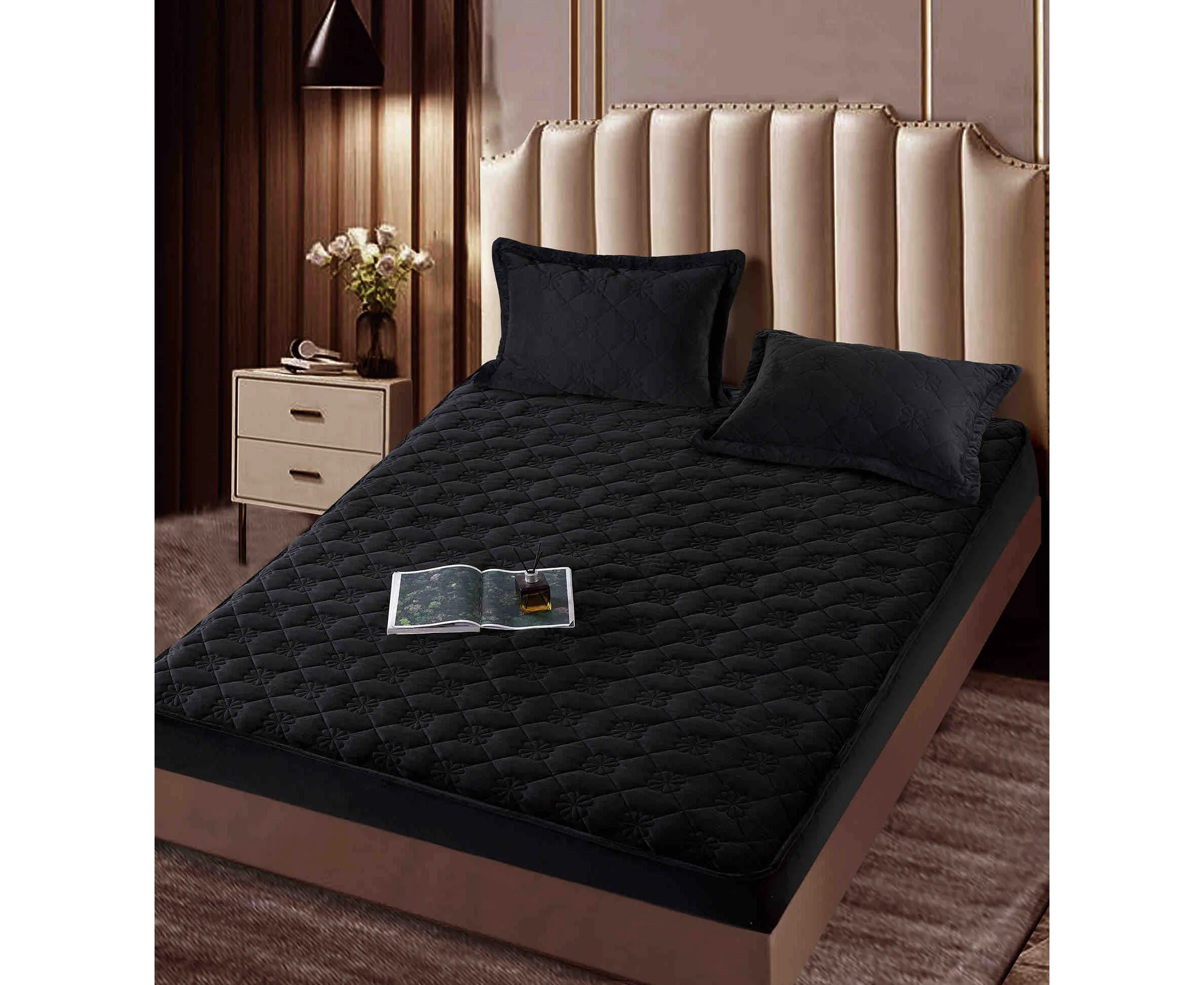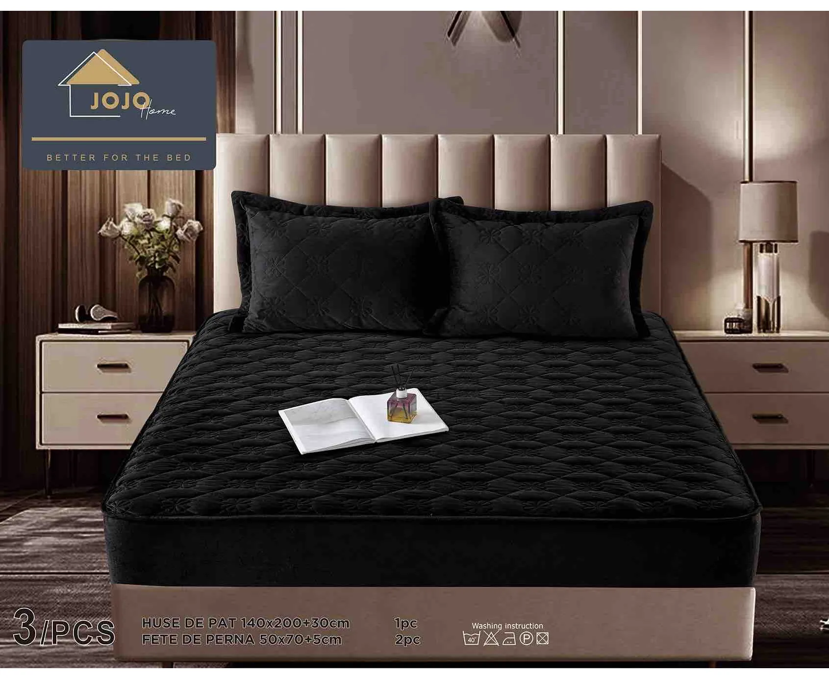 Topper Saltea/Husa de pat matlasata si 2 fete de perne din catifea, cu elastic, model tip topper 140x200 - JO856