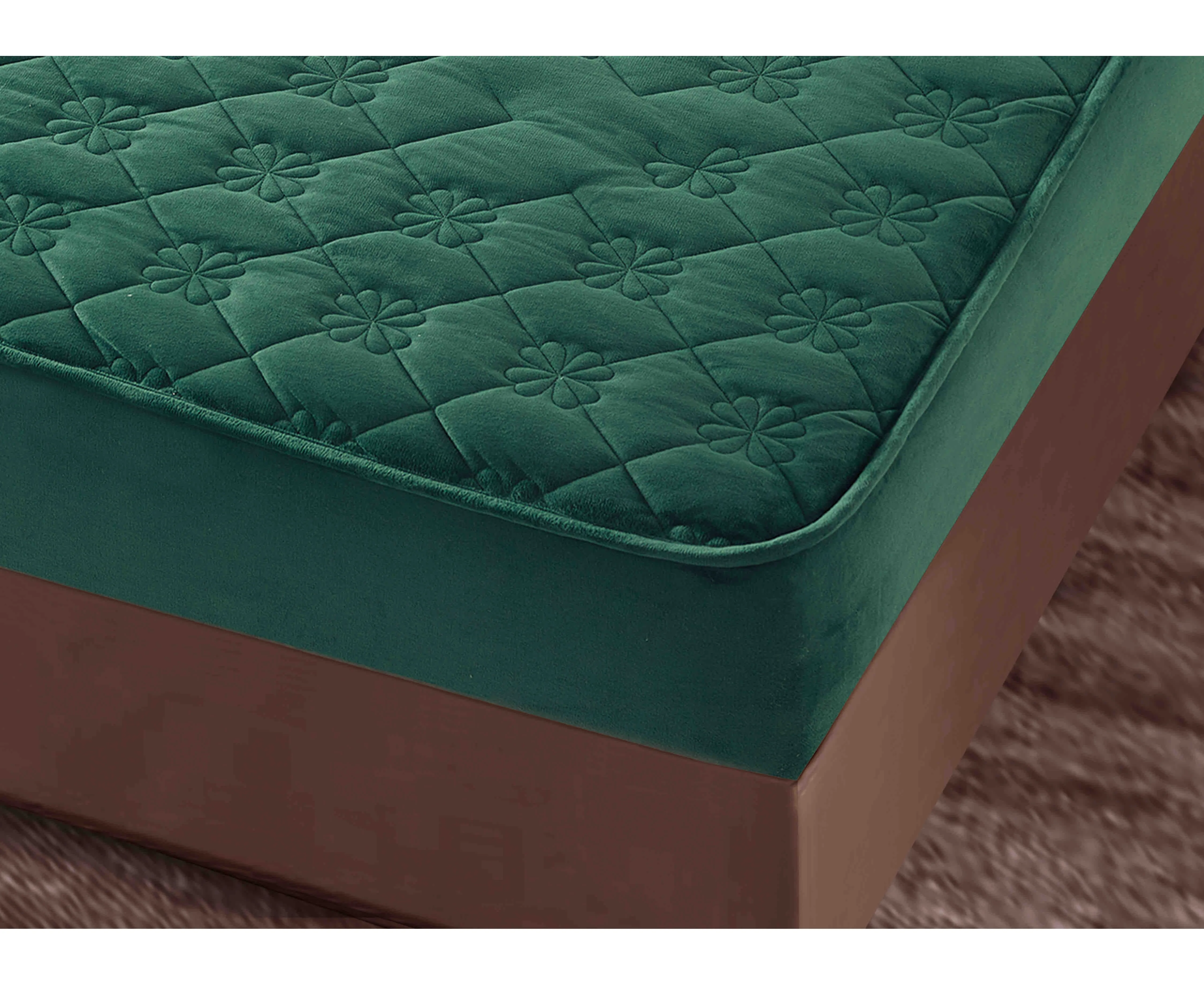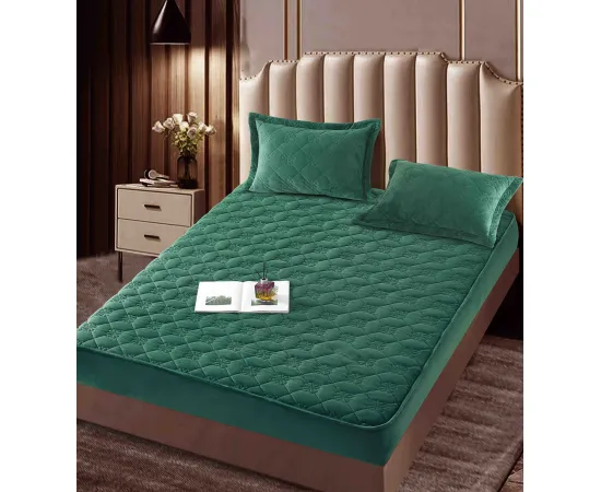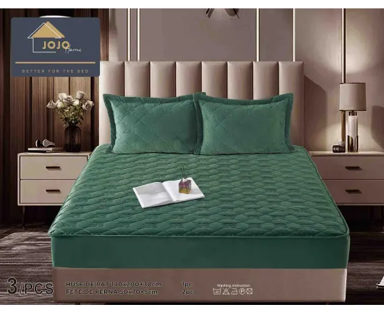 Topper Saltea/Husa de pat matlasata si 2 fete de perne din catifea, cu elastic, model tip topper 140x200 - JO857