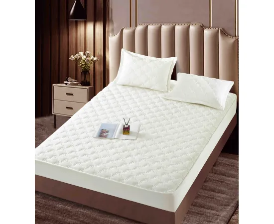 Topper Saltea/Husa de pat matlasata si 2 fete de perne din catifea, cu elastic, model tip topper 140x200 - JO858