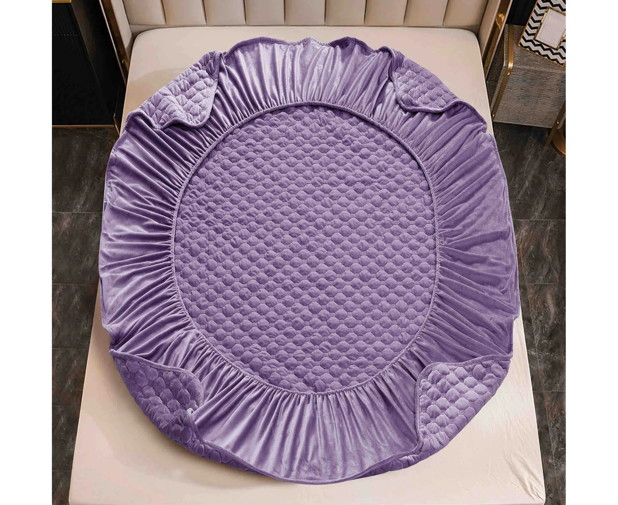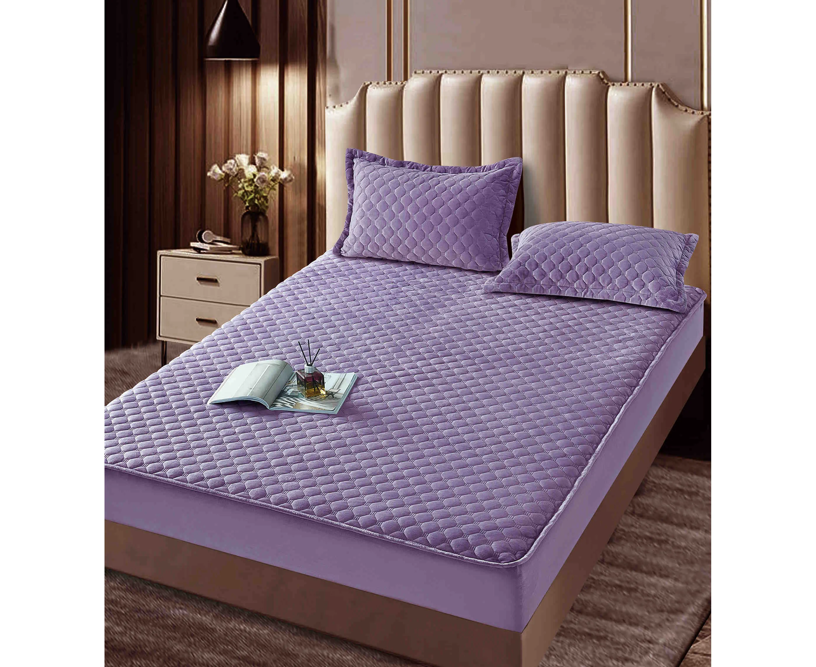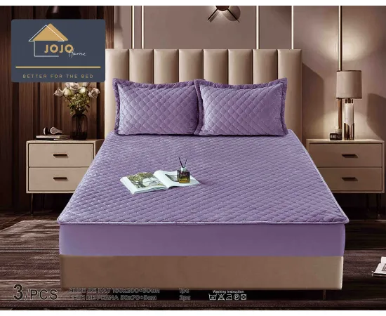 Topper Saltea/Husa de pat matlasata si 2 fete de perne din catifea, cu elastic, model tip topper 160x200 - JO842