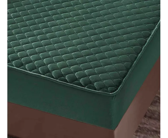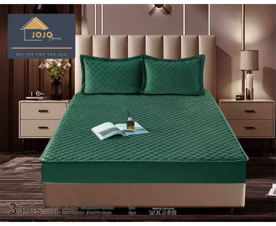 Topper Saltea/Husa de pat matlasata si 2 fete de perne din catifea, cu elastic, model tip topper 160x200 - JO844