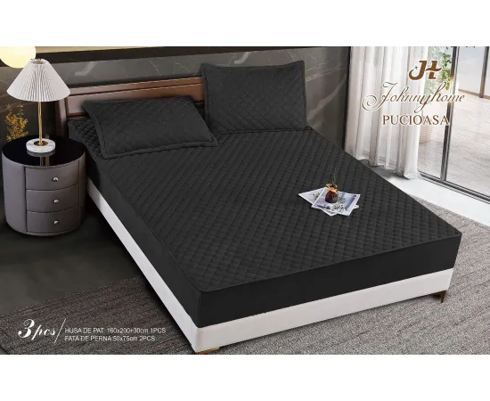 Topper Saltea/Husa de pat matlasata si 2 fete de perne din catifea, cu elastic, model tip topper 160x200 - SPR510