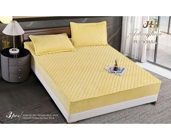 Topper Saltea/Husa de pat matlasata si 2 fete de perne din catifea, cu elastic, model tip topper 160x200 - SPR511