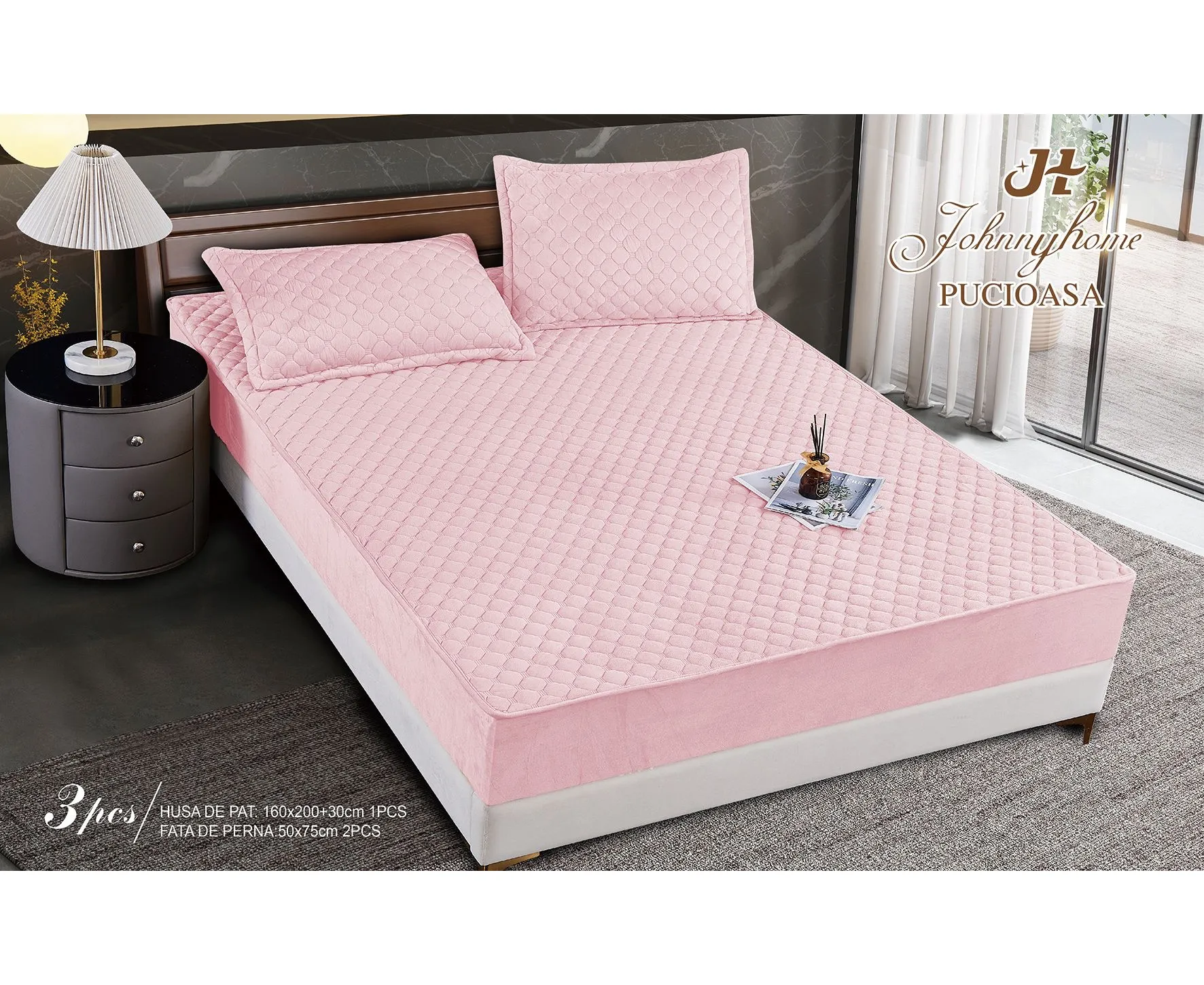 Topper Saltea/Husa de pat matlasata si 2 fete de perne din catifea, cu elastic, model tip topper 160x200 - SPR515