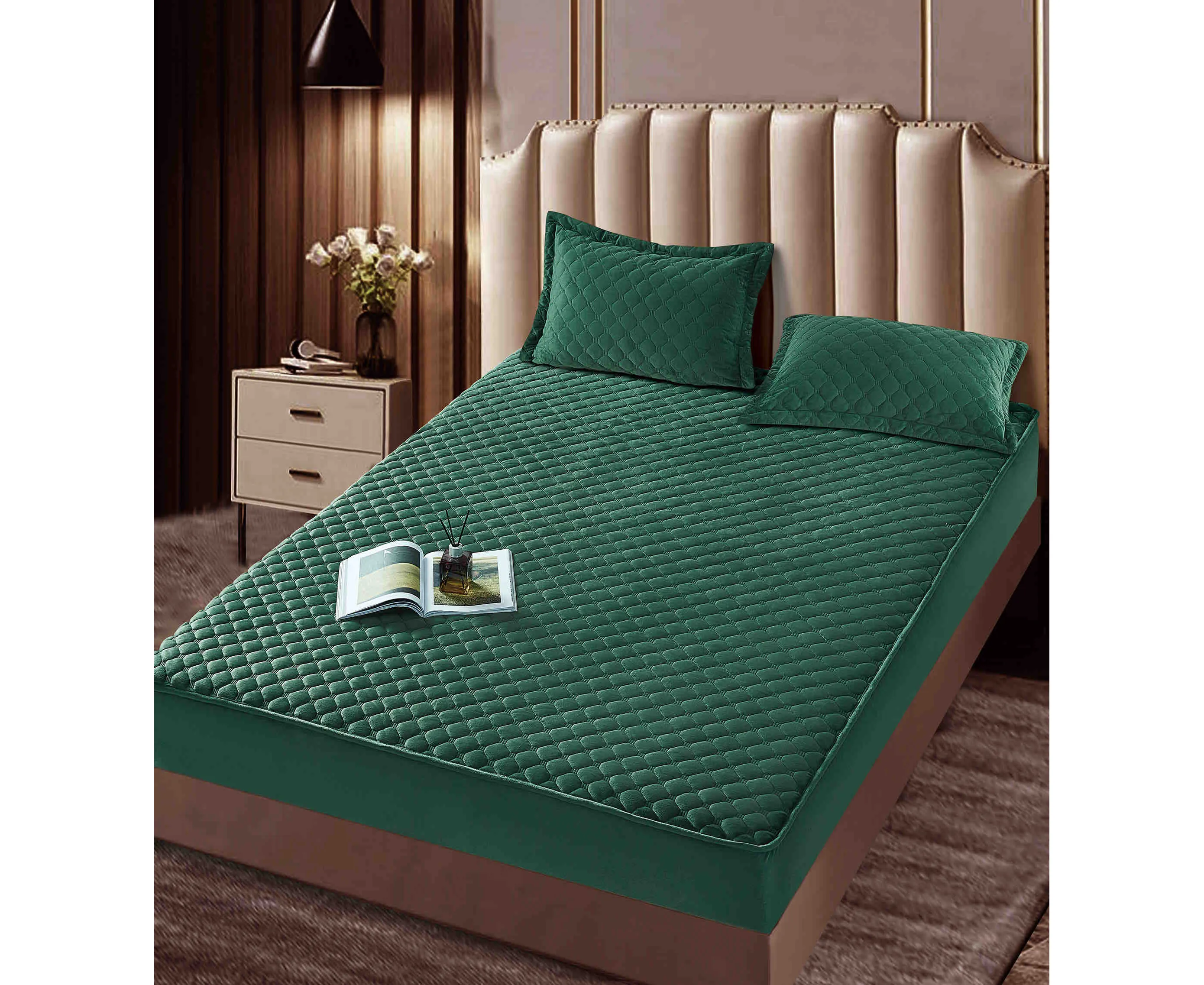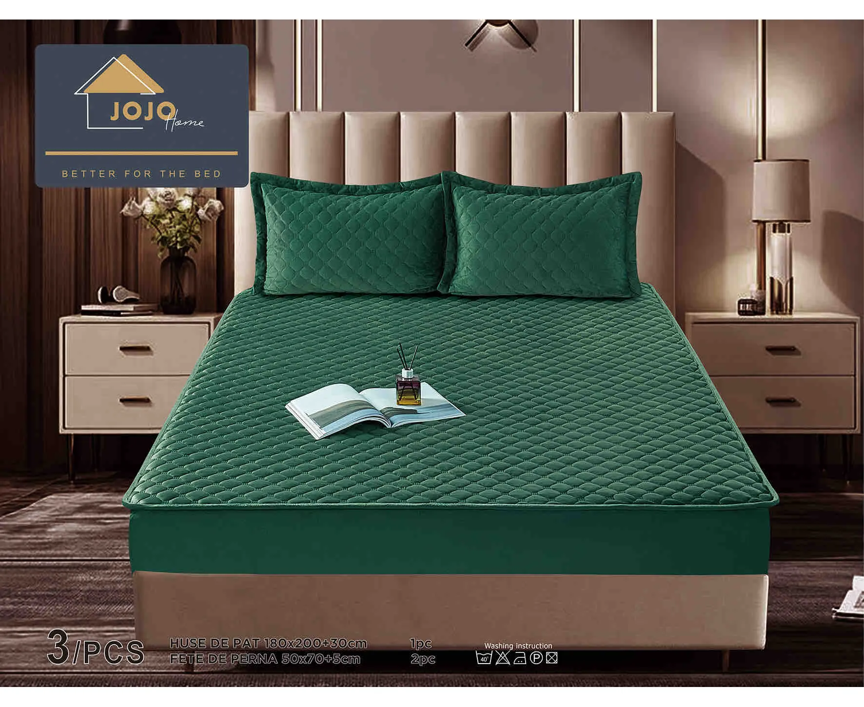 Topper Saltea/Husa de pat matlasata si 2 fete de perne din catifea, cu elastic, model tip topper 180x200 - JO832