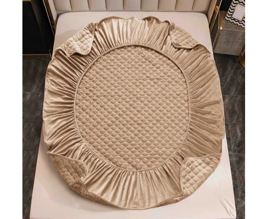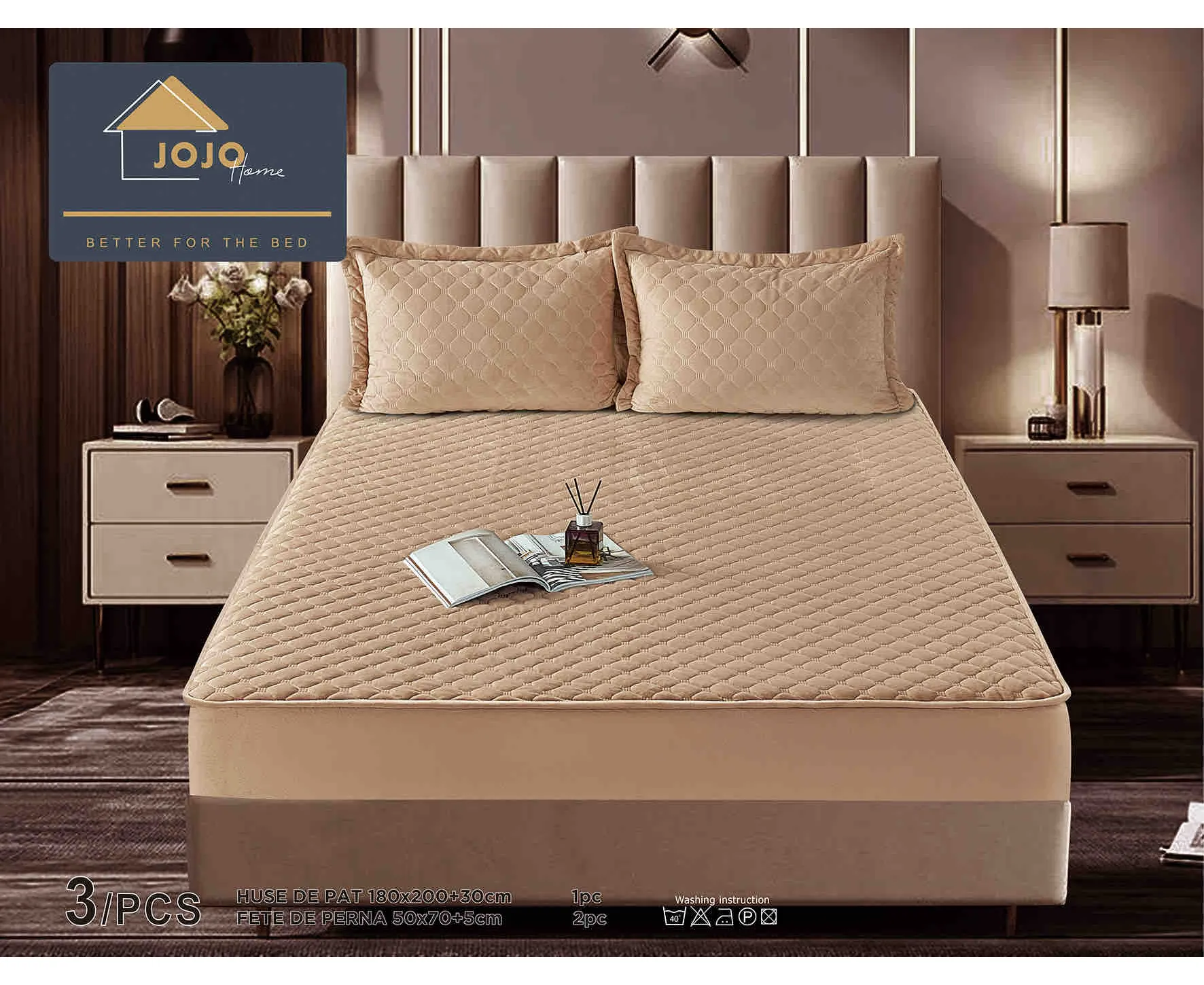 Topper Saltea/Husa de pat matlasata si 2 fete de perne din catifea, cu elastic, model tip topper 180x200 - JO833