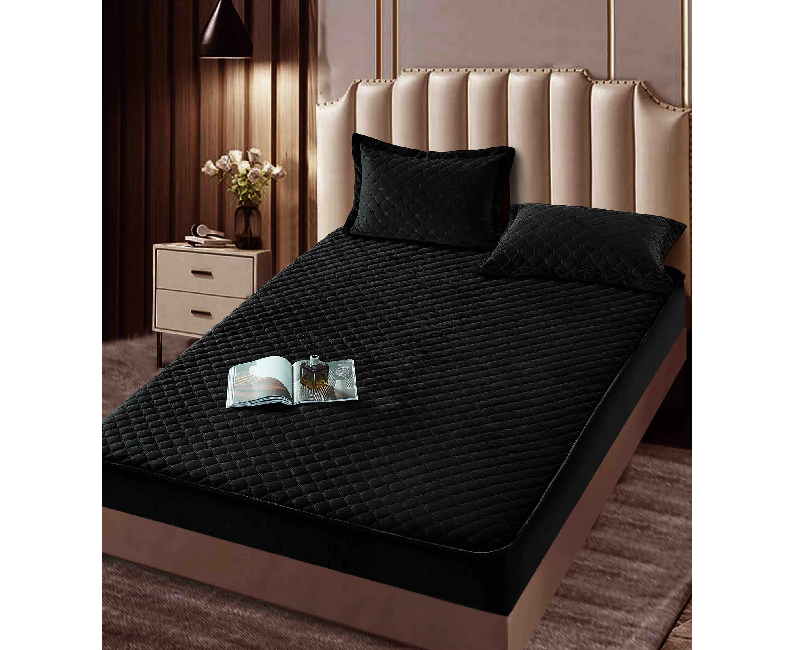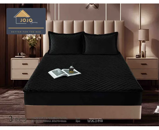 Topper Saltea/Husa de pat matlasata si 2 fete de perne din catifea, cu elastic, model tip topper 180x200 - JO838