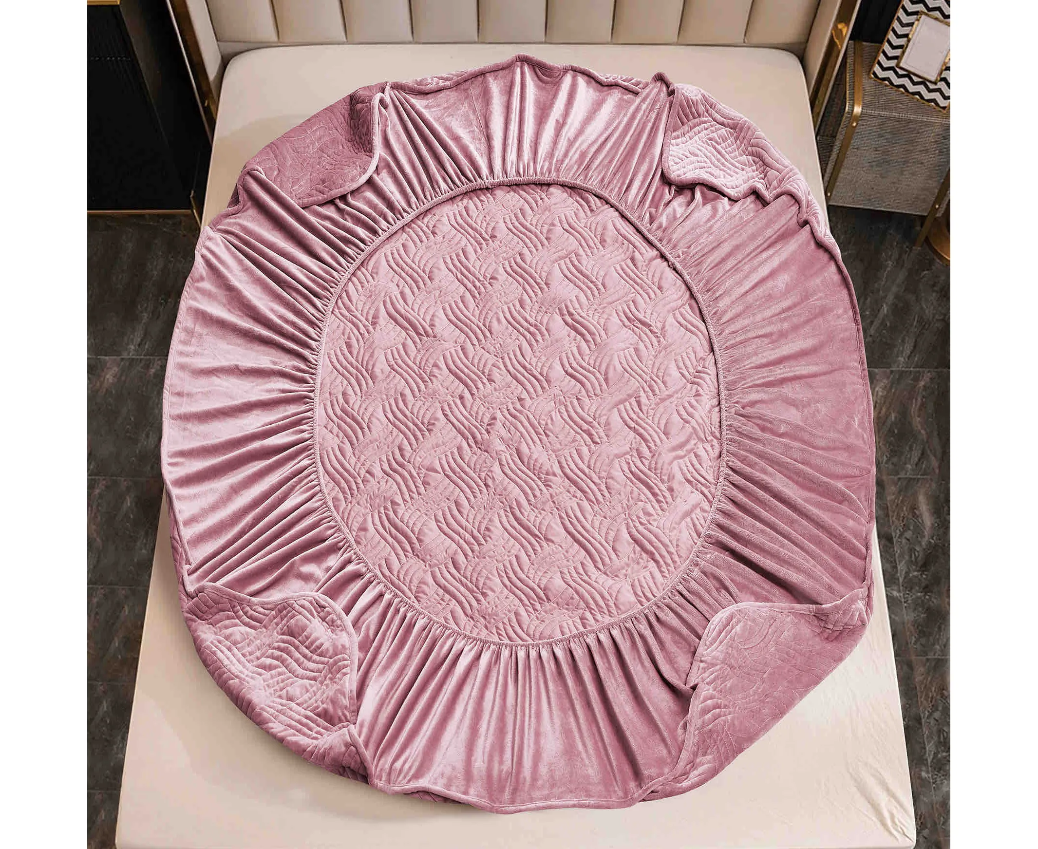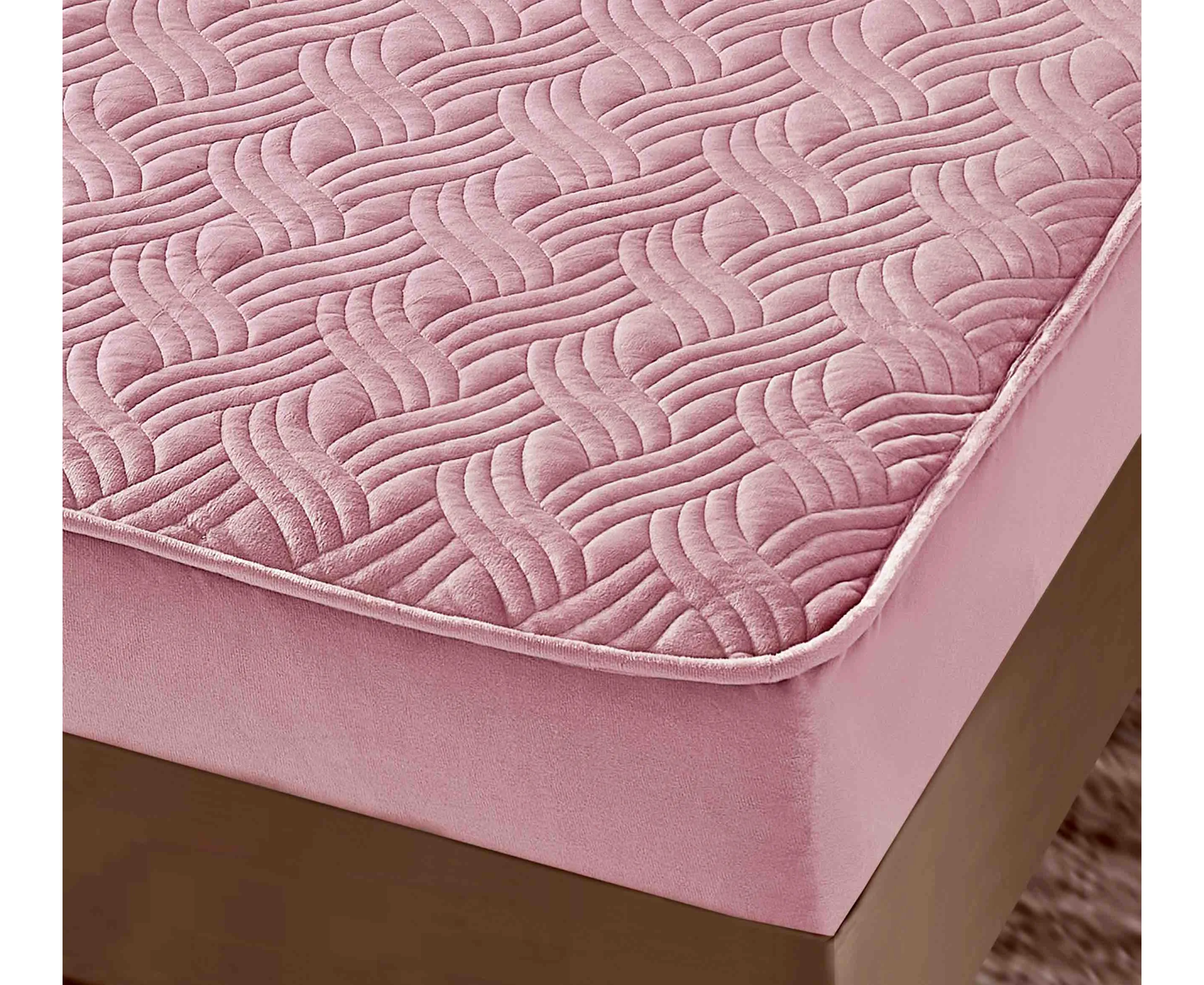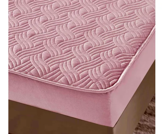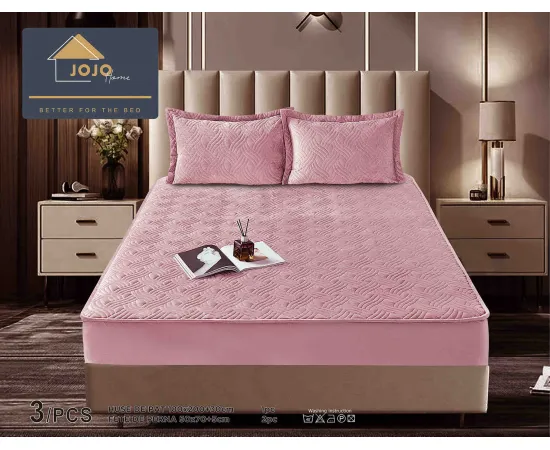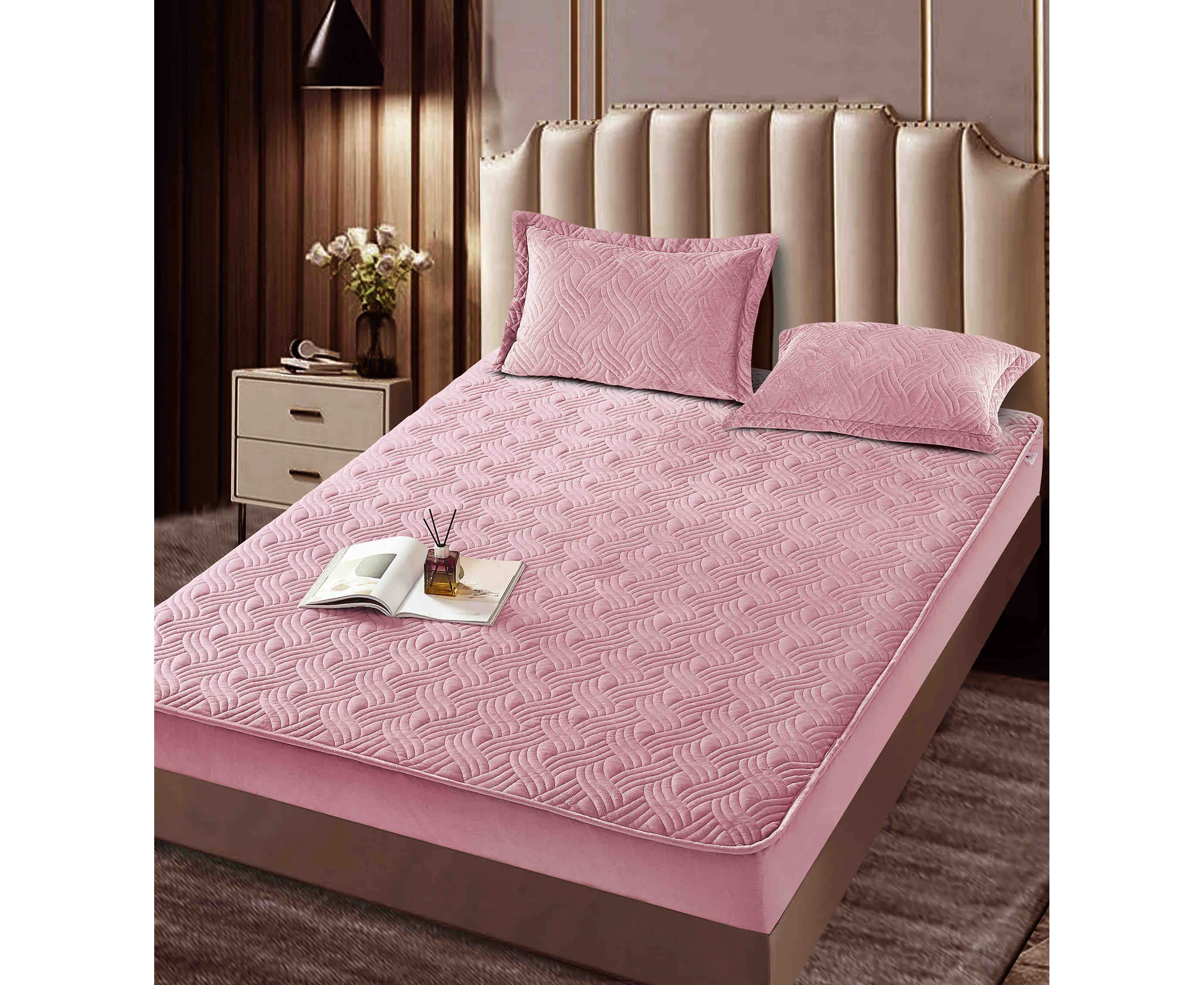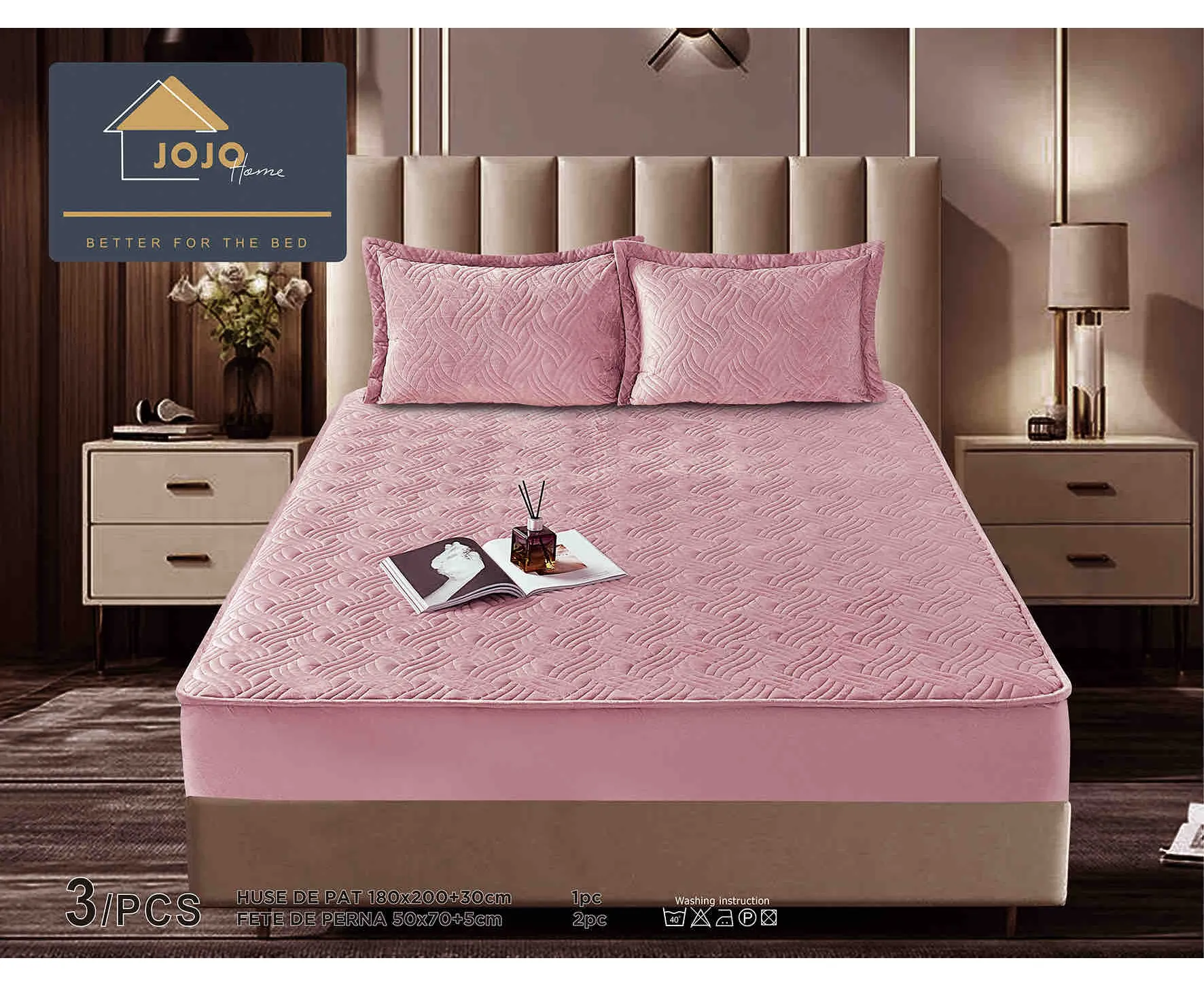 Topper Saltea/Husa de pat matlasata si 2 fete de perne din catifea, cu elastic, model tip topper 180x200 - JO839