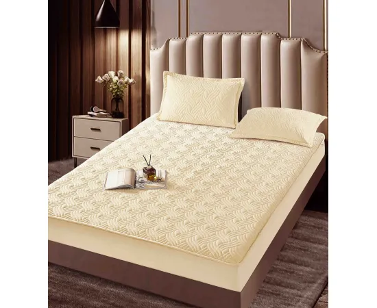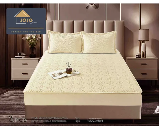 Topper Saltea/Husa de pat matlasata si 2 fete de perne din catifea, cu elastic, model tip topper 180x200 - JO840