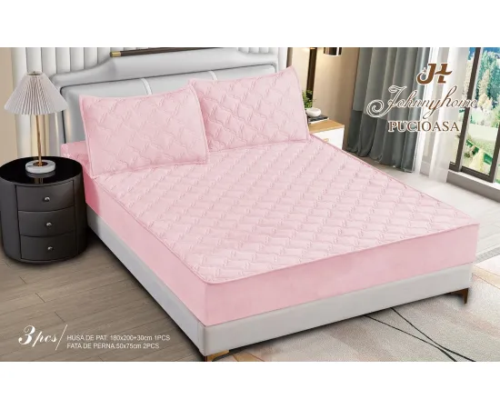 Topper Saltea/Husa de pat matlasata si 2 fete de perne din catifea, cu elastic, model tip topper 180x200 - SPR520