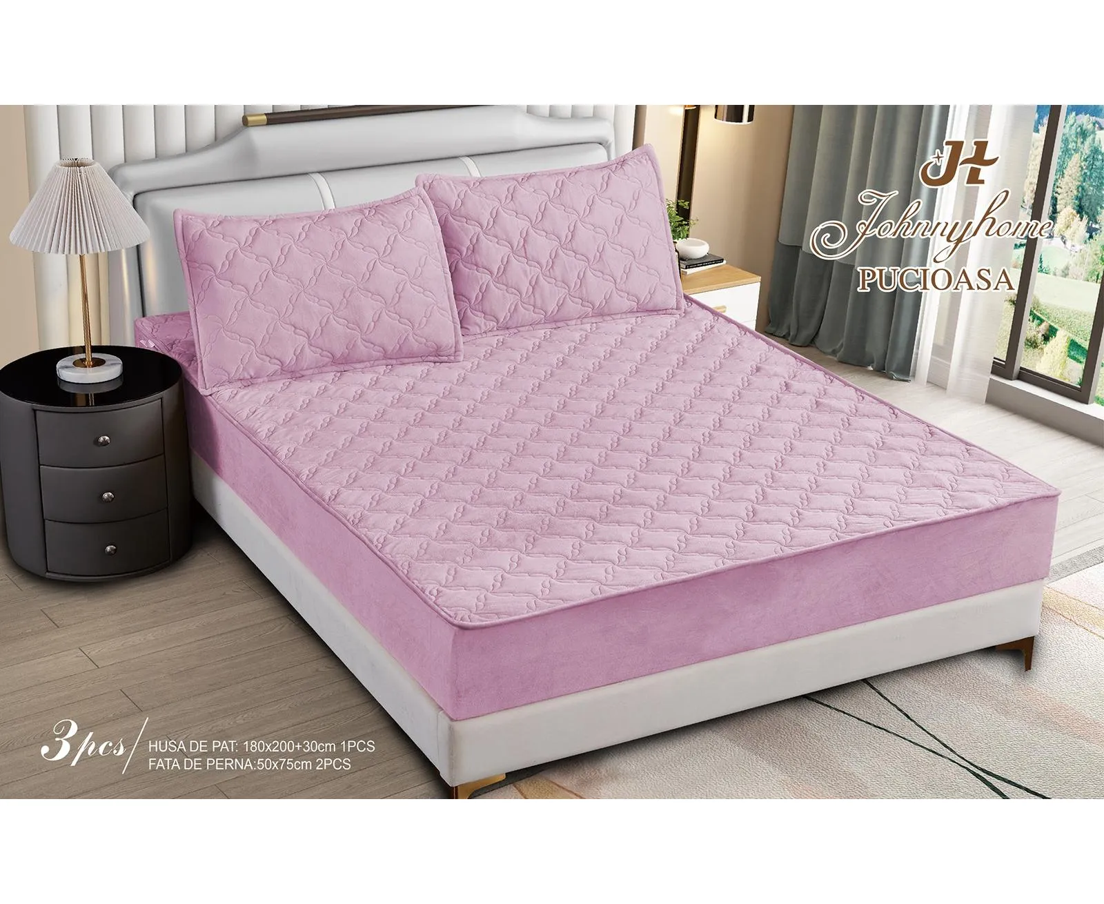 Topper Saltea/Husa de pat matlasata si 2 fete de perne din catifea, cu elastic, model tip topper 180x200 - SPR526