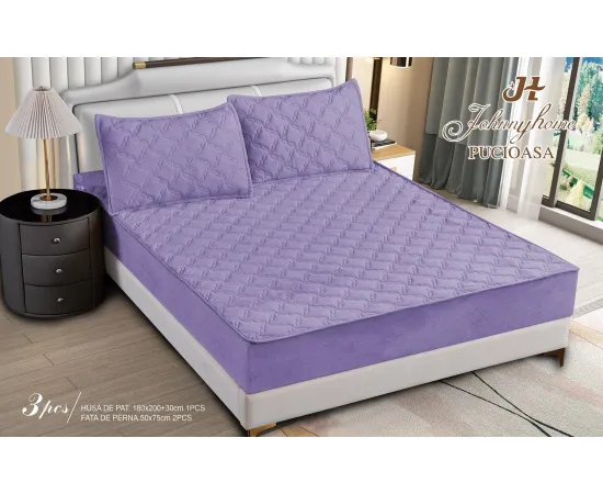Topper Saltea/Husa de pat matlasata si 2 fete de perne din catifea, cu elastic, model tip topper 180x200 - SPR530