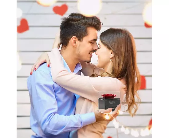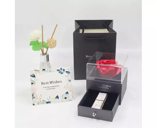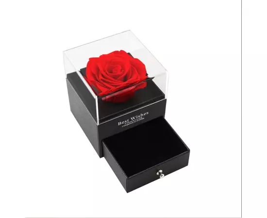 Trandafir Rosu + Cutie Tip Sertar Pentru Accesorii Bijuterii + Punga Cadou 9x9x10cm - VTLN100