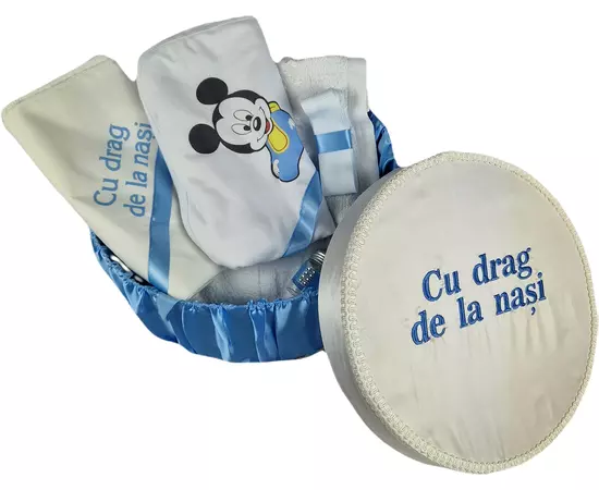 Trusou botez, 10 piese brodate, Model Mickey, Blue- BT39
